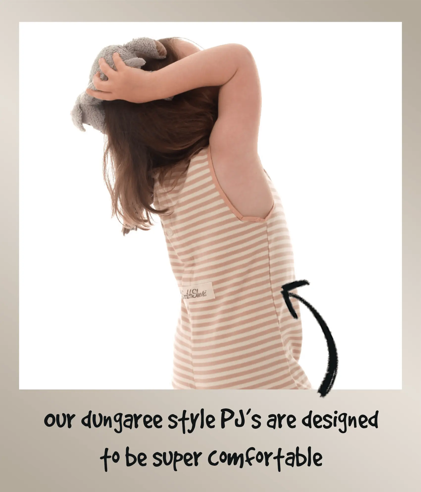 - Some children really struggle with itchy bellies and bottoms and so donβt get on with regular, elasticated PJ bottoms. Our dungarees are loose fitting over the tummy so donβt irritate in the way that an elastic waistband would and they limit access the midriff as well.