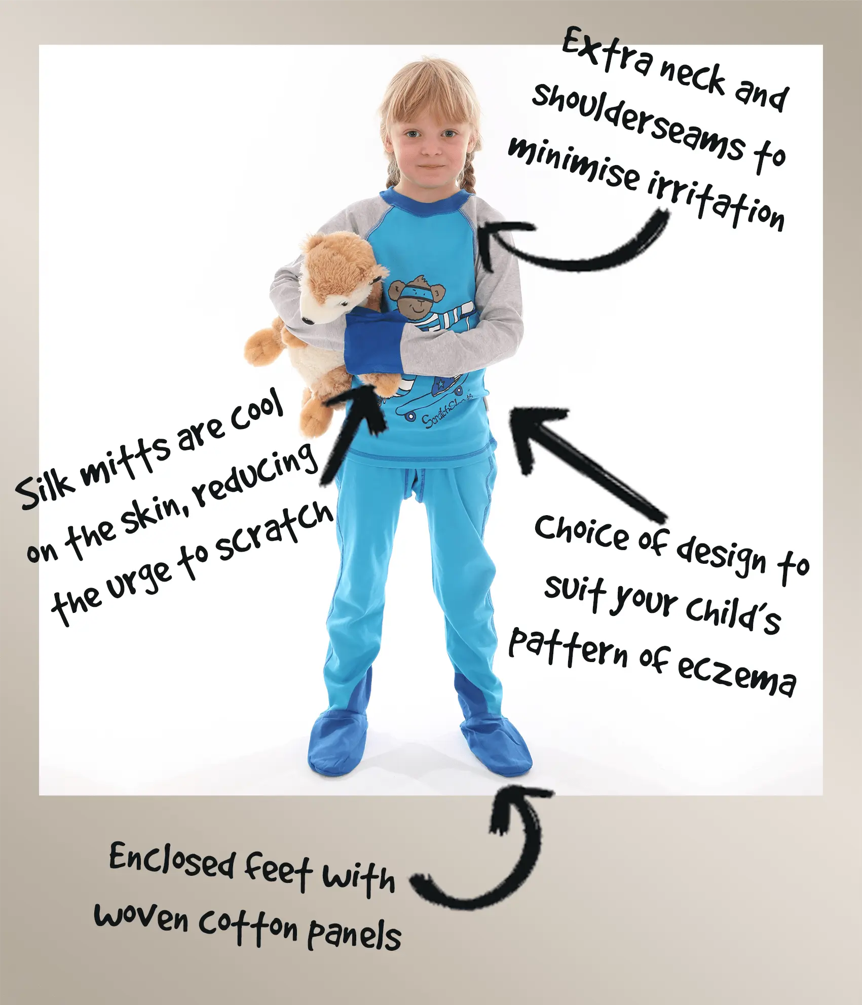 - A choice of PJ designs to suit your childβs pattern of eczema