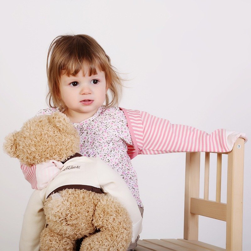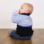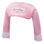 Smaller sizes (up to 9 months) have no shoulders and a cut-away neck line to keep little ones as cool as possible and so ScratchSleeves are easy for parents to use. We have added shoulders to the larger sizes to ensure they fit more comfortably and stay firmly in place on more active children.