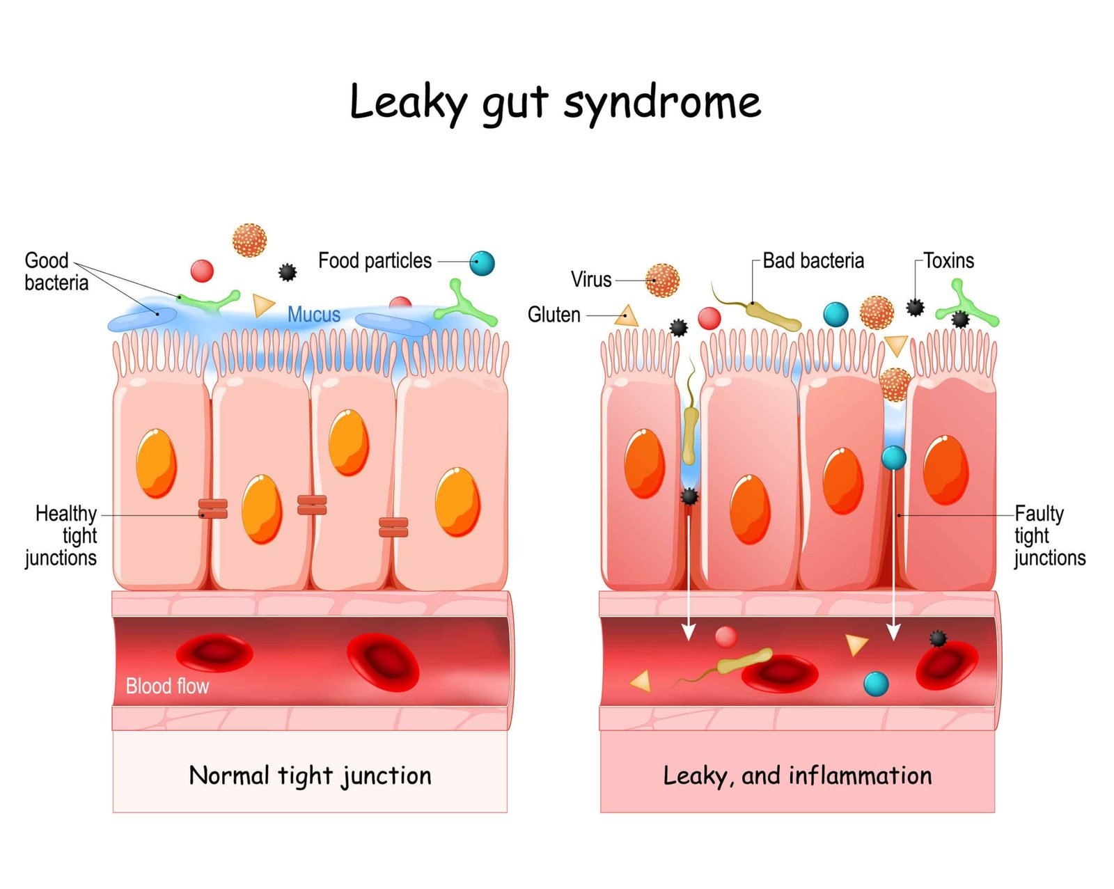 - Leaky gut syndrome is a condition where the gut lining becomes more permeable, allowing undigested particles to enter the bloodstream and potentially trigger inflammation and immune responses. Symptoms may include digestive issues, nutrient deficiencies, skin rashes (including eczema), and immune system problems.